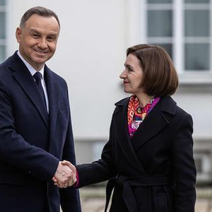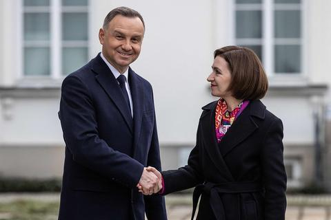 2月22日,波兰华沙,波兰总统安杰伊·杜达会见摩尔多瓦总统马娅·桑杜。(视觉中国)