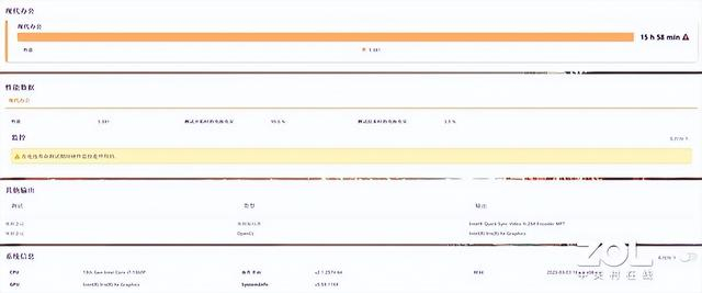 在续航能力上,灵耀14 2023使用了一块75Wh大容量电池,在最佳能效模式下,音量调整到50、亮度调整到70,打开WIFI、蓝牙,经过实测其续航达到了15小时58分钟,接近16小时的数据非常亮眼,配合三档性能模式切换,可以轻松应对各种不同的使用场景,在性能与续航之间取得更好的平衡。