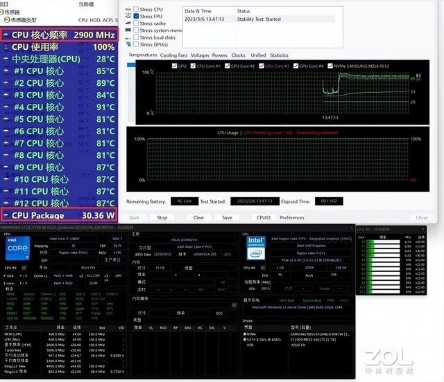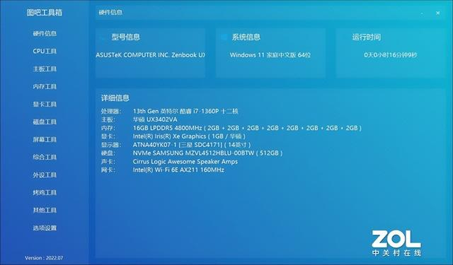 我们拿到的评测机型配置了第13代英特尔酷睿i7-1360P处理器、16GB LPDDR5超高频内存、512GB PCIe 4.0 NVMe固态硬盘以及英特尔锐炬Xe核显,同时还支持Wi-Fi 6E无线网卡。通过测试软件对其整体性能进行全面分析: