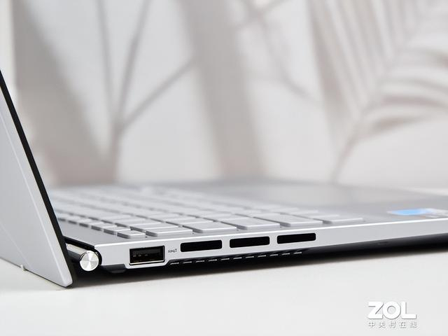 接口配置上,机身左侧靠近尾部的位置,配置了1个USB-A 3.2 Gen 2接口,可提供10Gbps的数据传输速度,另外也方便接驳键鼠接收器以及U盘、移动硬盘等设备。机身右侧配备有标准的HDMI 2.1 TMDS接口,3.5mm耳麦插孔,2个雷电4接口、Micro SD读卡器。这两个雷电4接口均为全功能,支持40Gbps数据传输速度,以及视频输出。