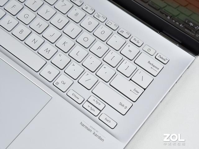 在灵耀14 2023轻薄本的C面使用了ErgoSense灵逸键盘。该键盘采用全尺寸人体工学设计,拥有1.4mm长键程、大尺寸键帽和19.05mm全尺寸间距,长时间敲击也不会感觉到手指疲劳,同时手腕也非常舒适,对于文字工作者来说,极为友好。此外,键帽采用0.2mm下凹弧面设计,键盘配有背光,支持三级亮度调节。在深夜的卧室,不开灯的情况下,可以把键盘灯光调到最暗档,一方面随时可以找到要敲击的按键,另一方面也不会因为开着卧室灯而打扰到家人休息。