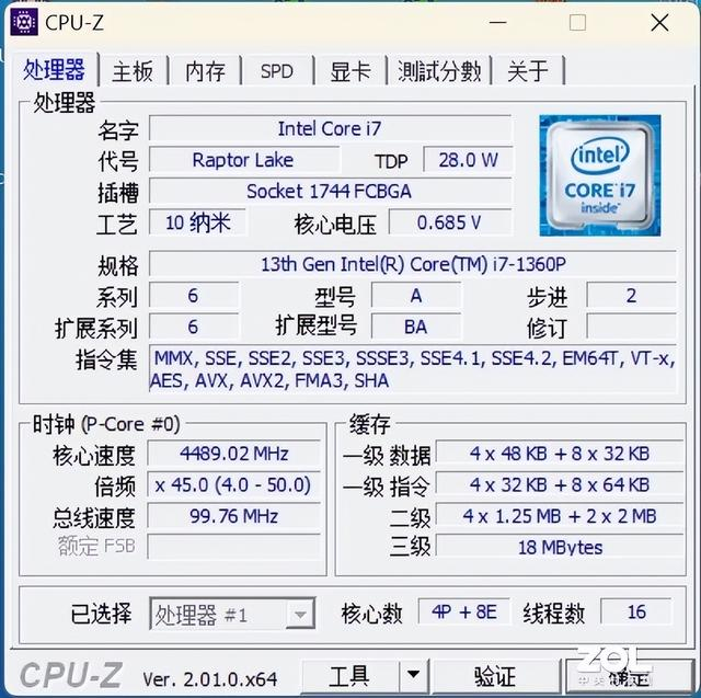 首先,英特尔13代酷睿处理器采用了改进后的Intel 7制程工艺打造,异构混合架构也得到了进一步增强,这使得13代酷睿处理器的核心数量和频率均有提升。尤其是这颗英特尔酷睿i7-1360P处理器,对于轻薄本而言更是如此。其采用了4个性能核心+8个能效核心设计,12核心16线程,最大睿频频率高达5.0GHz,具备了18MB三级缓存。