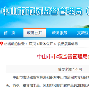 广东省中山市市场监管局抽检食品283批次 不合格8批次