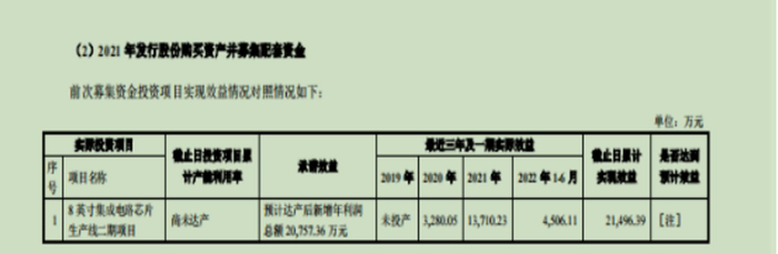 2021年,公司通过定增募集净额10.92亿元,用于8英寸集成电路芯片生产线二期项目以及偿还银行贷款。