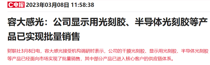 一则机构调研引发20cm涨停!高端光刻胶国产化空间广阔,受益上市公司梳理