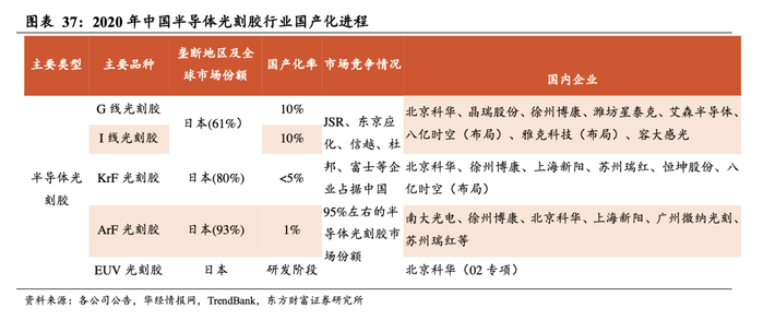 目前,半导体光刻胶市场国内厂商仅有北京科华(彤程新材)、华懋科技(徐州博康)、南大光电、晶瑞电材、容大感光、上海新阳、八亿时空等少数几家。