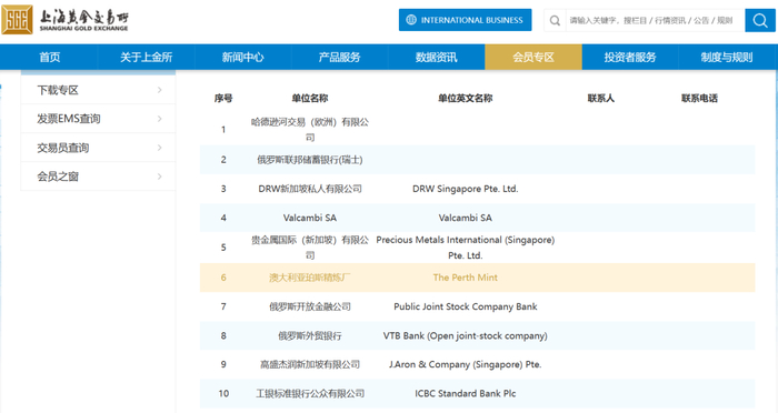 据上金所官网披露,截至目前澳大利亚珀斯精炼厂(The Perth Mint)名列该所的国际会员名录中。