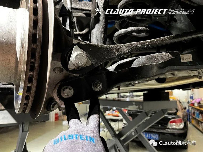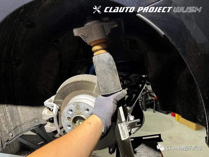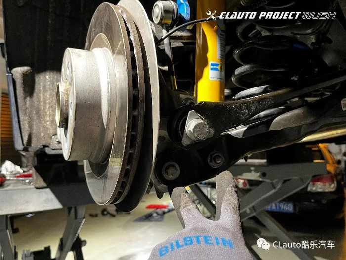3 安装的第一步是拆卸车轮,并将车辆安全的举升起来。确认车辆原来的悬挂系统没有损伤,Bilstein B6的安装就开始了。