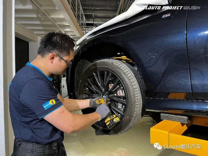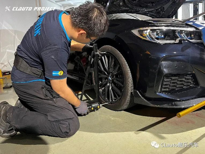 由于Bilstein B6是原车原位微升级减震器,更换减震器后车身高度没有变化,减震器安装完毕后便是做基础的四轮定位。