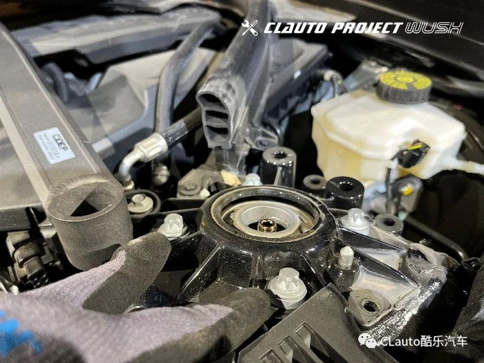 15 最后将塔顶上的4个螺栓安装回原位,前减震器总成的安装就完成了。接下来我们来拆除后减震器。