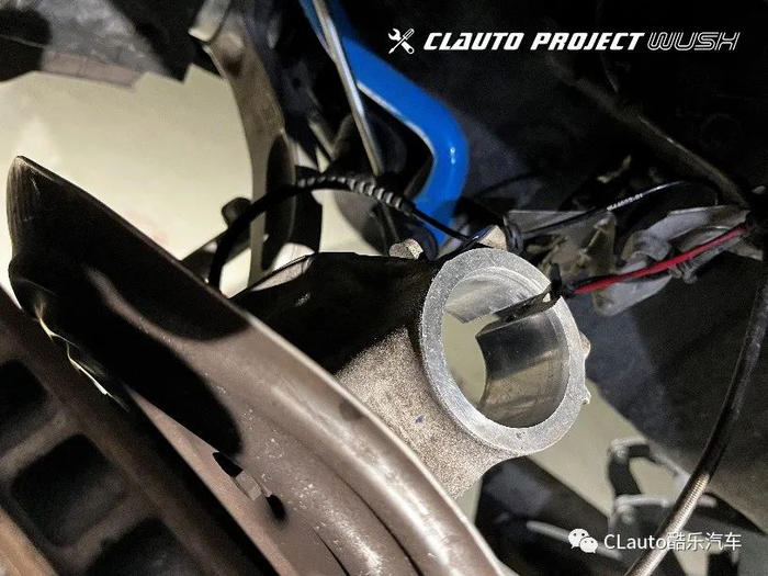 注意:轮速传感器的线束需要从减震器和刹车盘之间的位置穿过,而不是减震器的后侧。