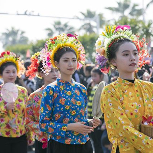 2023年2月19日,福建泉州,丰泽区东海街道蟳埔社区举办顺济宫巡境活动,蟳埔女盛装列队亮相,场面壮观。视觉中国 资料图