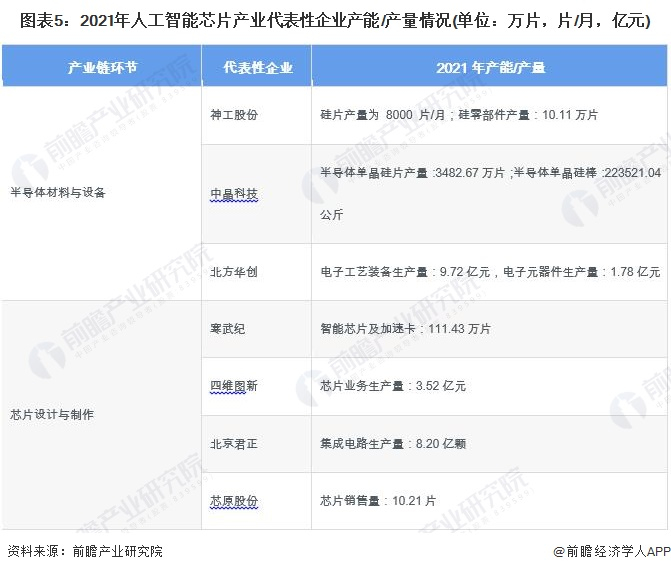 3. 人工智能芯片产业代表性企业产能/产量情况