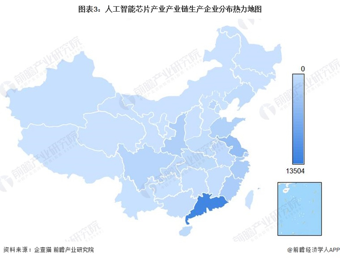 2. 人工智能芯片产业产业链区域热力地图:广东分布最集中