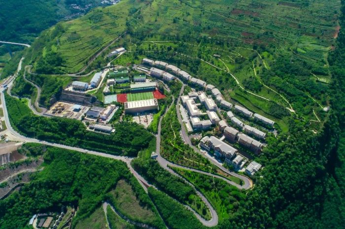被绿色环绕的白鹤滩建设者营地,白鹤滩植物园就在其中摄影:谢雷