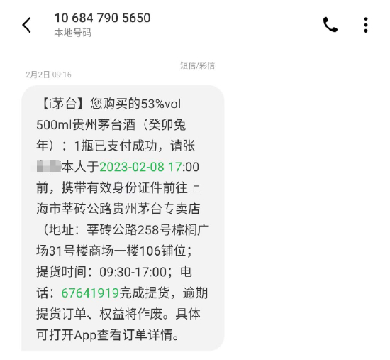 张先生几次联系茅台专卖店和茅台官方后,在2月26日被重新下单,张先生领了酒,但是距离约定时间已经过去了18天。