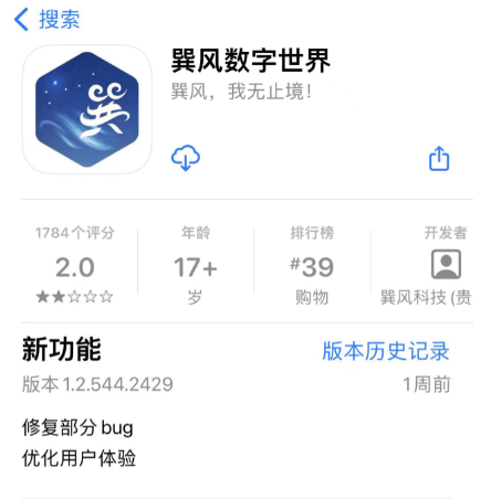 巽风数字世界推出仅仅3个月,便争议不断,在Apple商店中,只有2.0的评价,被不少玩家质疑是茅台披着元宇宙的外壳“割韭菜”。有玩家表示,想要获得购酒资格,就需要投入大量的时间,还得氪金,不然排名靠不了前。