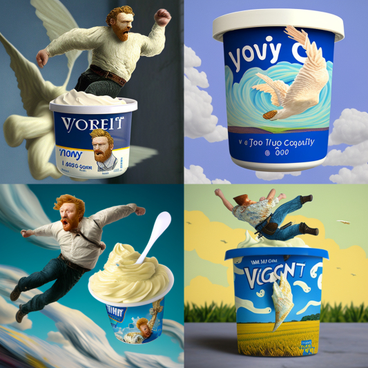 这个提议正合我们心意,双方一拍即合,说干就干!于是,我们又花了一周的时间,尝试用AI去做一个实际的包装设计项目:梵高特色的酸奶盒包装。