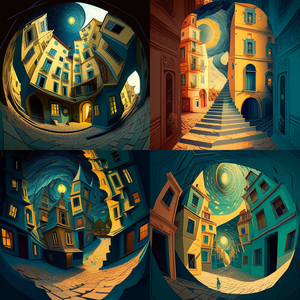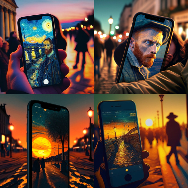用ChatGPT的创意生成的图片,虽然美观度没有问题,但是画风明显不太统一,而且较难看出梵高画作的风格,与我们期待的作品还有一定差距。