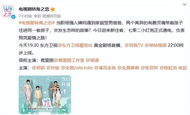 《转角之恋》官博宣布该剧3月9日起在东方卫视播出。“当职场强人辣妈遇到家庭型男爸爸,两个离异的有趣灵魂带着孩子住进同一套房子,会发生怎样的故事?”