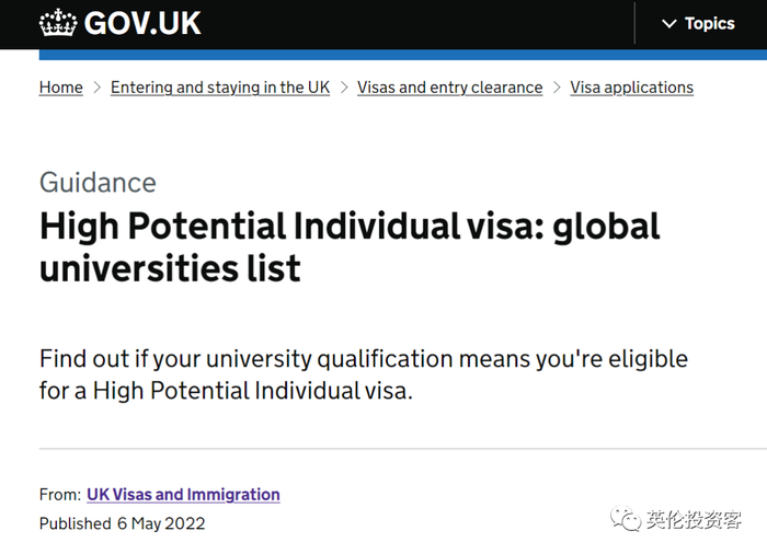 就比如,英国推出的“高潜力人才签证”于2022年5月30日正式开放申请,允许来自全球顶尖大学的毕业生在英国自由从事任何工作,无需公司担保。