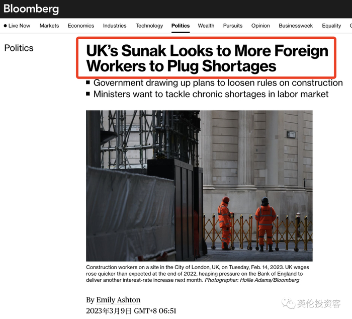 正因如此,苏纳克才有意通过发布新移民政策来补齐这一空缺,在全球范围内招聘劳工来英国工作。