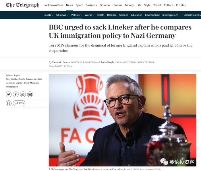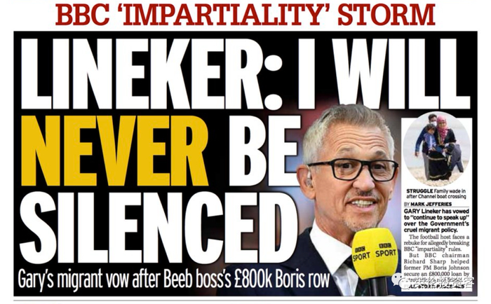 BBC体育主持人批评内政部移民新法案,面临被处分风险