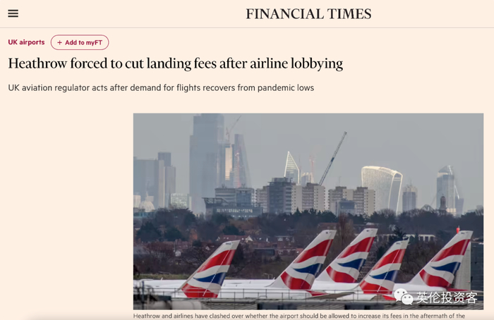 《金融时报》消息称,由于航空公司对英国航空监管机构的成功游说,希斯罗机场将被迫削减着陆费。