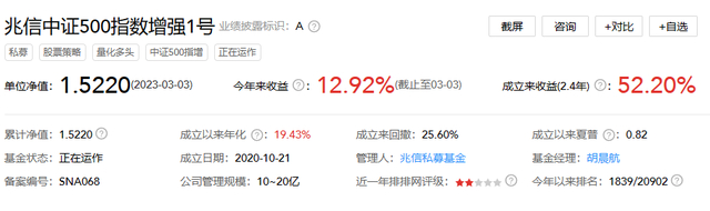 这个江苏籍私募机构的产品,也叫“中证500指数增强(1号)”。理论上和公募产品属于同一策略方向。