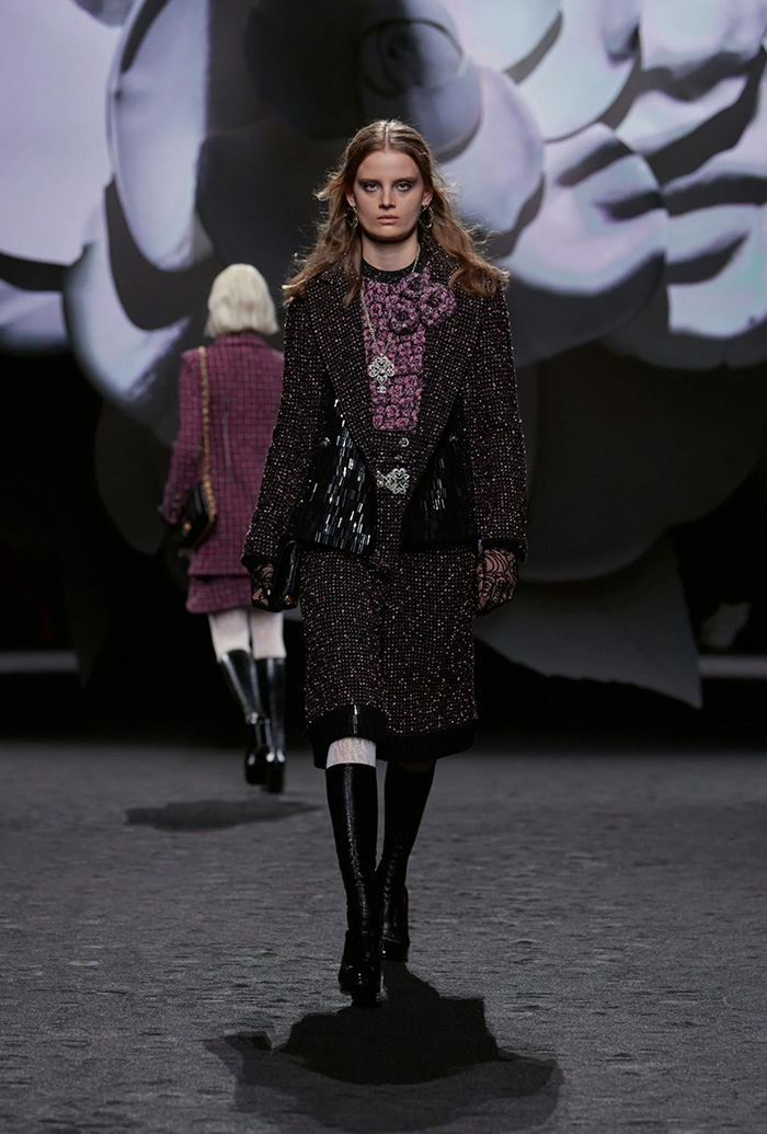Chanel 2023秋冬大秀登场,本季创意总监Virginie Viard将创作主题紧扣在山茶花上,将这个Chanel的标志性符号洒落在66套秀场服装之上。