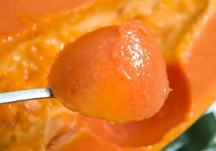 而与普通木瓜相比,颜色更鲜艳的红心木瓜,切开就能闻到甜甜的木瓜香味,一口下去香浓又滑溜,感觉就像在吃甜品。