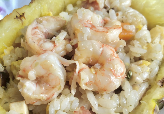 炒出来的饭味道很特别,本身甜味在菜肴中就起到提鲜的作用,吃起来很有东南亚特色。吃一口炒饭,再配一块凤梨,十分解腻,甜中带一点酸,很甜很水,很好吃。