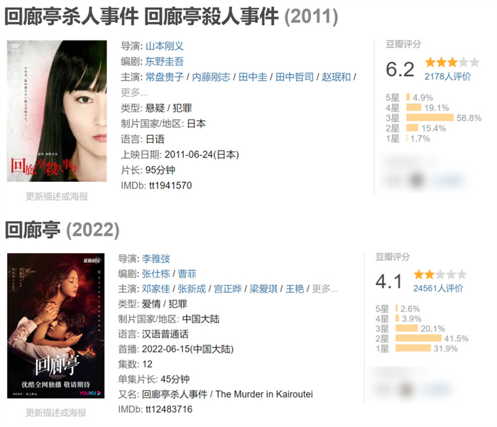 《回廊亭》此前有日本影版、国产剧版,口碑都不理想。