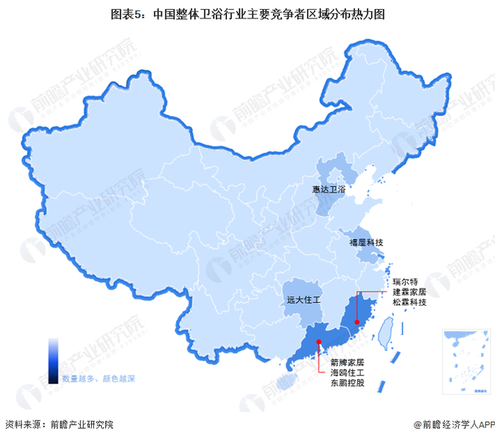 注:中国整体卫浴行业相关上市公司包括生产卫生陶瓷、五金洁具、浴缸浴房、浴室柜、陶瓷砖、防水建材等卫浴产品公司,由于上市公司均未单独划分整体卫浴业务收入,但因其业务与整体卫浴高度相关,故上表以各公司2021年整体营收进行统计。
