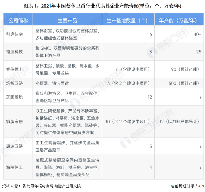 本文核心数据:中国整体卫浴厂商产能情况、中国整体卫浴厂商市场份额
