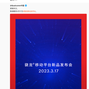 高通宣布将于3月17日举行骁龙移动平台新品发布会,届时预计将发布新一代骁龙7系迭代平台,由于代号是SM7475,目前暂时不确定最终命名是骁龙7+还是骁龙7Gen2,今天先以「新骁龙7」代称。(PS.卢伟冰也转发了官宣微博,估计Redmi新机也快了~)