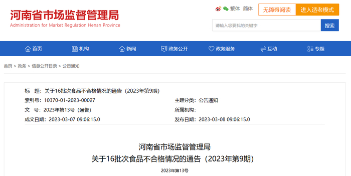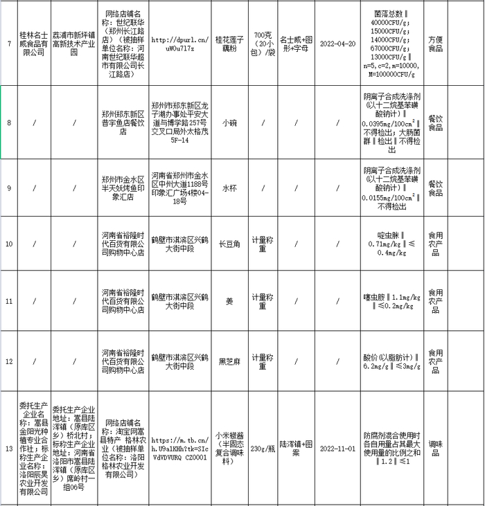 河南通告16批次食品不合格,世纪联华、半天妖烤鱼检出不达标