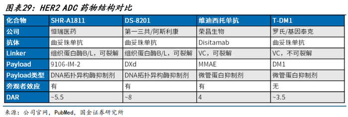 对于SHR-A1811,恒瑞将其定位为DS-8201的me-too产品,根据恒瑞公布的资料显示,SHR-1181采用的payload是依喜替康类似物,与DS-8201采用的DXd毒素几近一致(恒瑞选用的Payload是9106-IM-2),包括linker也极为相近(均为组织蛋白酶B/L),均可裂解linker,均能被组织蛋白酶裂解。