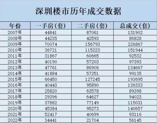 看,这是深圳从2007年-2022年,近16年来的历年成交数据。