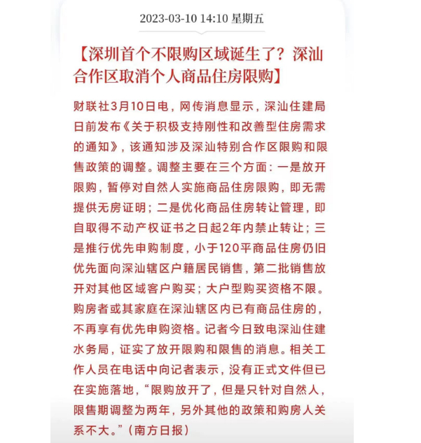 虽然仅仅只是第一道口子,虽然只是深汕合作区,但接下来还会不会有更多放松、更多利好?值得期待。