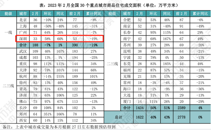 2月份,深圳新房住宅成交面积33万㎡,环比涨幅58%,同比涨幅60%;
