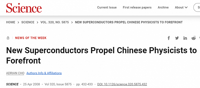 目前,美、日、中是全球超导领域的领先者。2008年,《科学》杂志就以“新超体把中国物理学家推向世界最前沿”为题,认为 “中国如洪流般不断涌现的研究结果,标志着在凝聚态物理领域,中国已经成为一个强国”。