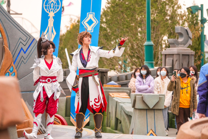 据介绍,此次王者荣耀英雄盛会回归,北京环球度假区与腾讯再度联手,将充满电影感的大片世界沉浸体验与广受年轻人喜爱的潮流文化符号——王者荣耀相结合。王者荣耀英雄巡游故事以王者世界“长安城”中的一场盛大的皇家巡游为背景 , 展现了英雄们围绕“机关核”展开的谋划与较量。巡游所呈现的故事情节跌宕起伏,通过充满戏剧张力的演出和对白,呈现出一台沉浸式移动舞台剧。