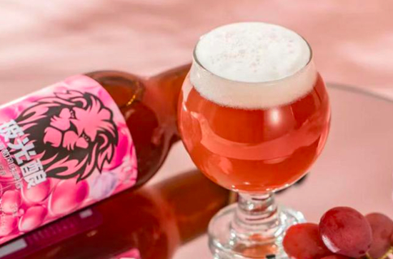 据介绍,狮王玻光酿玫瑰葡萄精酿啤酒精选原料,独创工艺配方,添加红葡萄汁与透明质酸钠,将玻尿酸与葡萄等经典果味复合混搭,打造了“玻尿酸、女性啤酒”的新鲜概念。