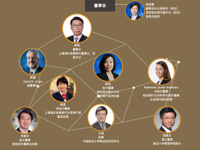主要管理团队方面,浦发硅谷银行官网显示,目前董事长为郑杨,其同时为浦发银行董事长;行长为陆珏,其同时为硅谷银行亚洲总裁。