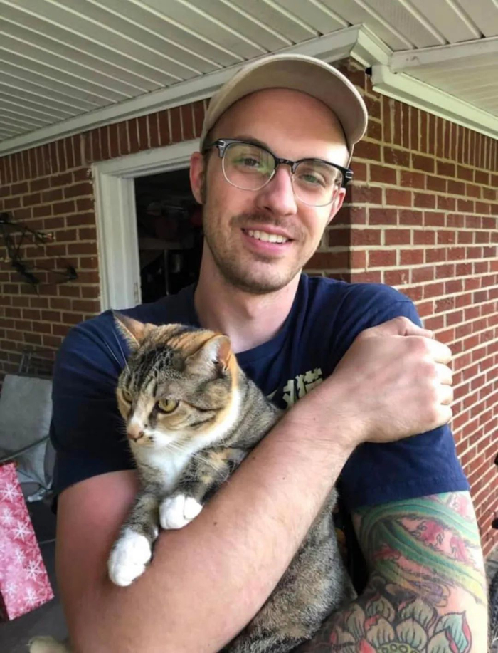 我可爱的侄子,在他26岁生日的前几天,想把他跑到房顶的猫咪救下来时,不慎从高处摔了下来。