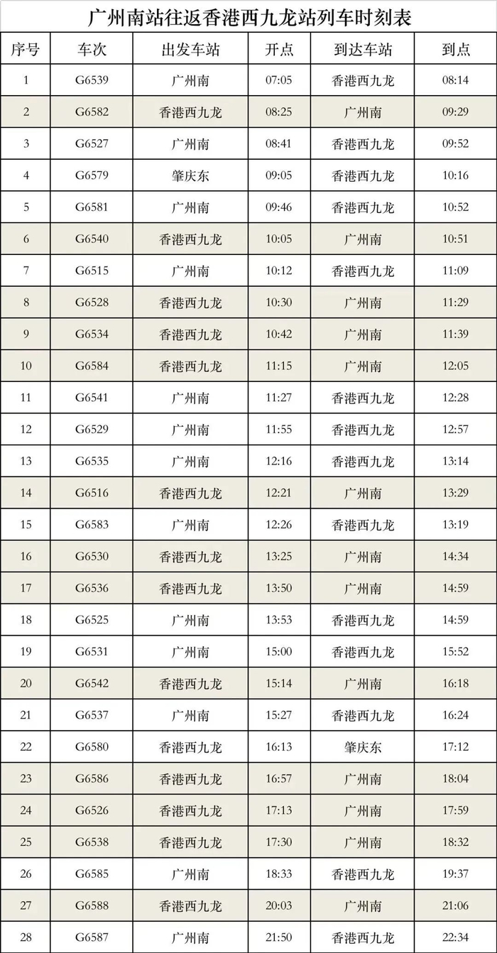 今日起增加!广州南站⇋香港西九龙站选择更多