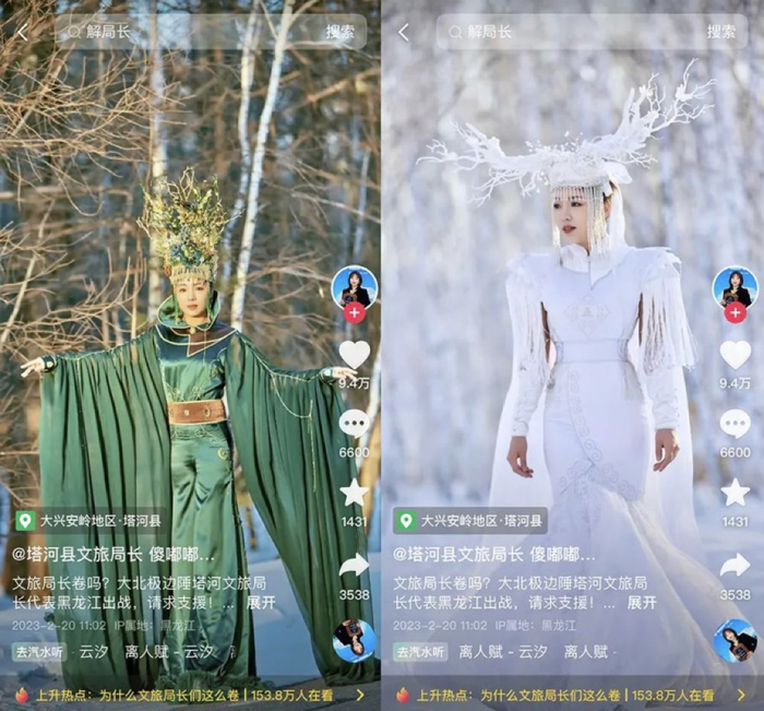 黑龙江塔河县,局长都波在零下20度穿长裙代言上热搜后,“狍角帽”“鄂伦春族服饰”成为热门话题。