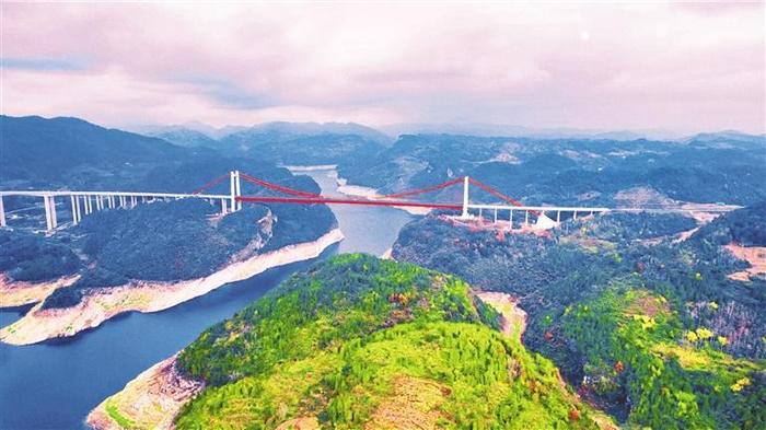 遵余高速飞龙湖乌江大桥位于遵义市余庆县构皮滩镇。