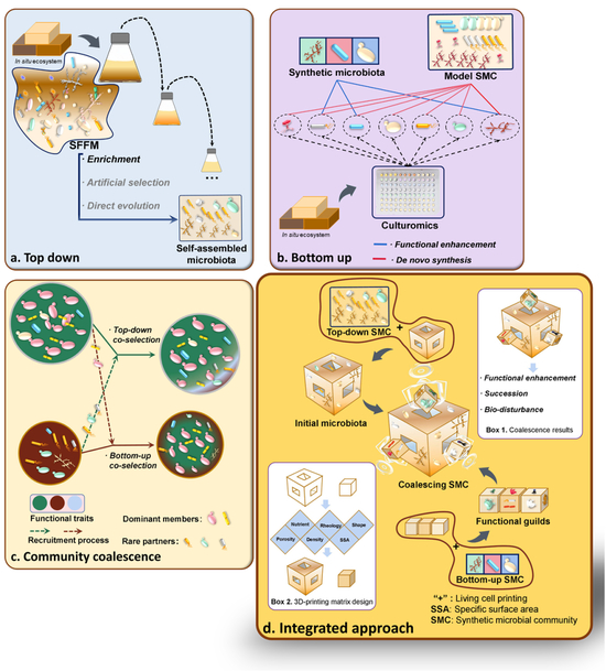 本文提出目前“限制控制”的低成本、易操作使得传统工艺难以被替代,尤其对于白酒生产来说,天然微生物资源几乎是零成本的,因此维护酿造环境微生物资源多样性尤为重要,茅台集团发表的《Research trends in Jiang-flavor baijiu fermentation: From fermentation microecology to environmental ecology》文中也明确了这一特征。“设计控制”可用于全面揭示传统发酵中的原理,强化“限制控制”效力,针对传统固态发酵体系提出研究策略,展望基于群落融合理论与3D打印技术提出一种整合构建高维微生物群,特别是充分发挥白酒传统控制与现代设计控制的优势,为传统微生物群控制提供更科学的指导。